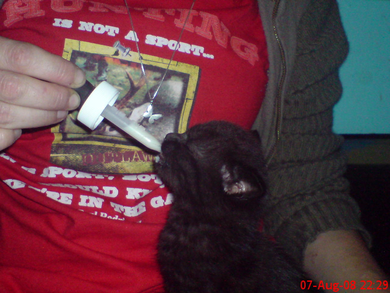So a feeding regime of every two hours was established. It started by giving approx ten mls every two hours and gauging the reaction of the kitten with regards as to how to proceed. If the food stayed down the next feed would continue as the previous. If the kitten was sick then the amount was reduced to five mls and we started again.